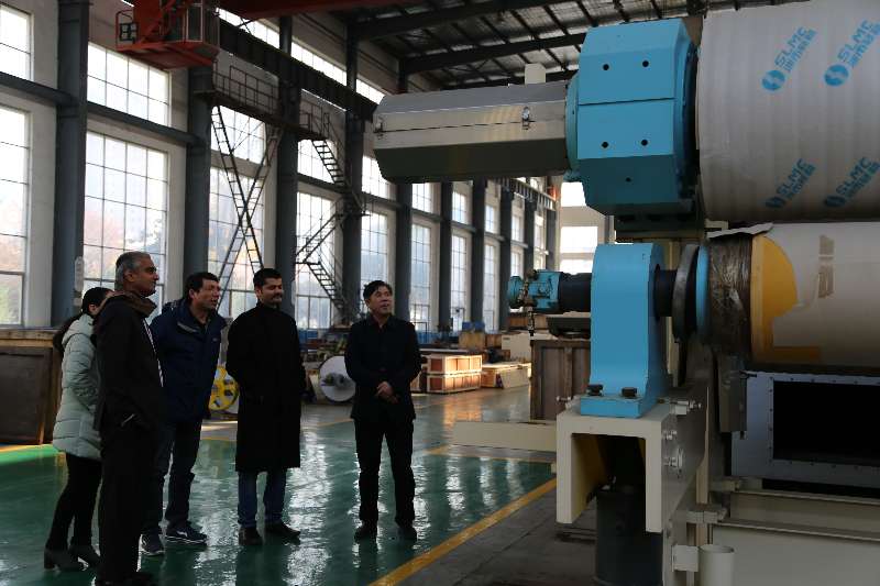在总经理彭宜纯、总工程师张晓磊、副总经理王良桥的分别陪同下,两批客商参观了公司生产车间和技术中心展厅,在生产的第一现场,客商认真观摩了设备的生产流程,工作人员就具体的产品技术参数为来访客商进行了详细说明。参观中,彭总介绍说,公司利用消化引进技术结合自主创新生产的涂布机、膜转移、威尼斯人博彩产品质量可靠、性能优越,目前成功出口印度、印尼、伊朗、乌兹别克斯坦等国家和地区,尤其近几年公司积极融入国家“一带一路”大战略,已成功为印度用户提供了包括引纸系统、干燥系统、涂布系统、施胶系统、压光系统在内20多条涂布生产线项目改造,赢得了印度客户的一致好评,树立了品牌!