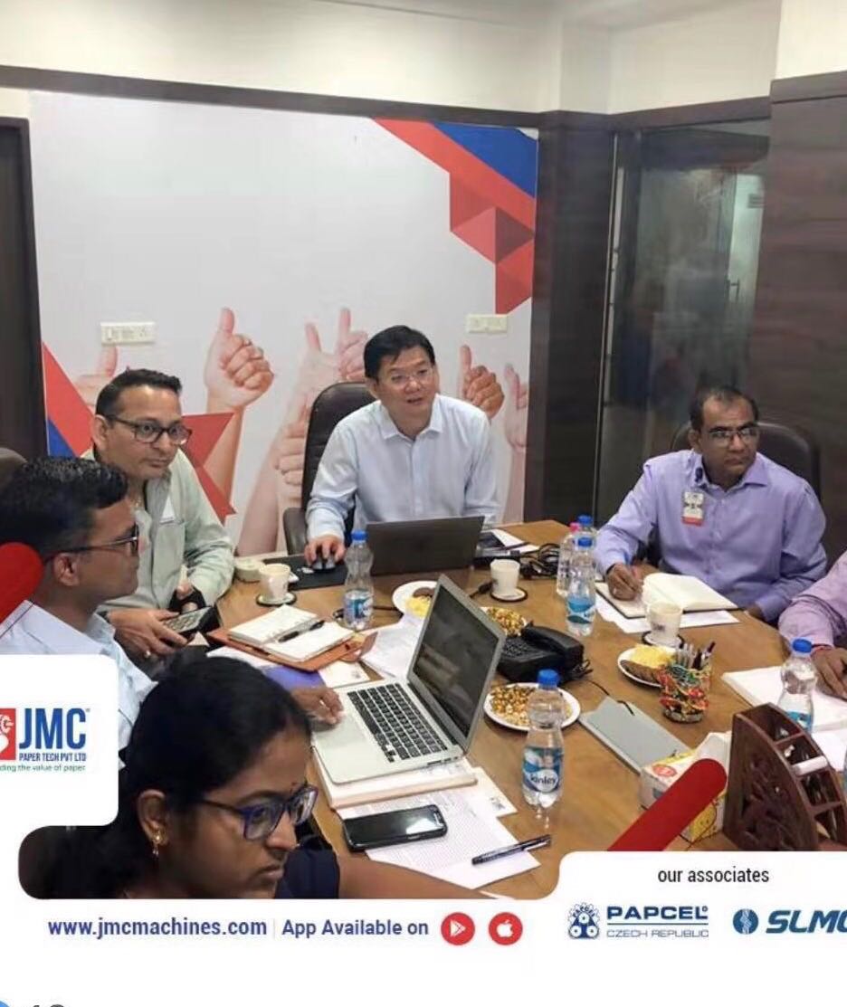 9月9-10日,我司总工程师张晓磊应邀赴印度为JMC PAPER TECH PVT.LTD.的骨干员工进行了涂布机等相关技术专题培训。这是继7月份我司与印度JMC公司和捷克PAPCEL(印度分公司)签订三方合作协议以来,公司践行协议宗旨,专门委派专家赴印授课。此次培训取得了圆满成功,既增进了三方友谊,又分享了专业知识和市场信息,为今后三方的合作提供了有效的支持。