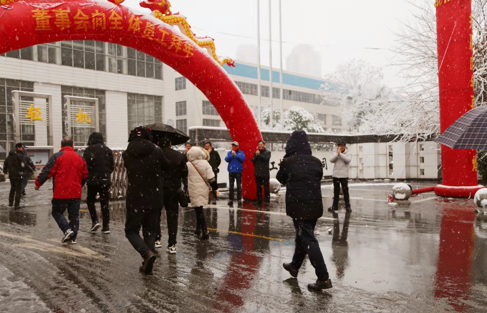 早晨8:38分,董事长潘荣敦、总经理彭宜纯率全体公司领导冒雪守候在公司大门口,恭迎春节第一天前来上班的员工并祝贺新年。随后公司还为每位员工分发了预示新年红红火火的大红包。
